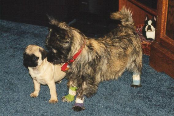 Toto seems to be carefully checking out the new addition to the household.